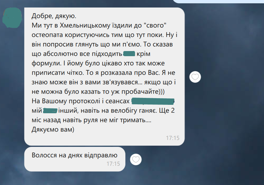 Тестування стану організму по волоссю не є науково доказаним методом діагностики. Тому я не використовую тест для постановки діагнозу. Тестування дає мені інформацію, на основі якої я можу побачити ту чи іншу інфекцію, інші патологічні прояви, біохімічні порушення і їх взаємозв’язки, і запропонувати можливі аналізи та діагностичні процедури для підтвердження свого припущення. Також написати рекомендації для корекції виявлених патологічних змін.